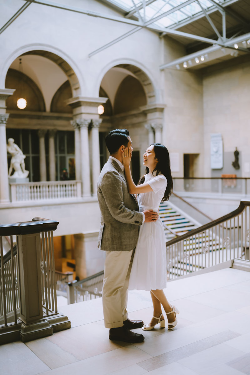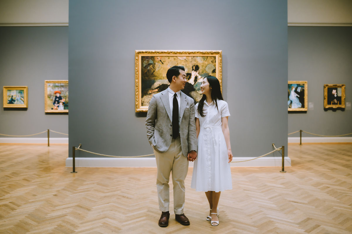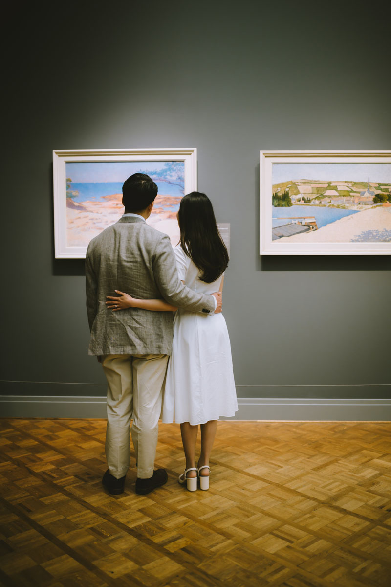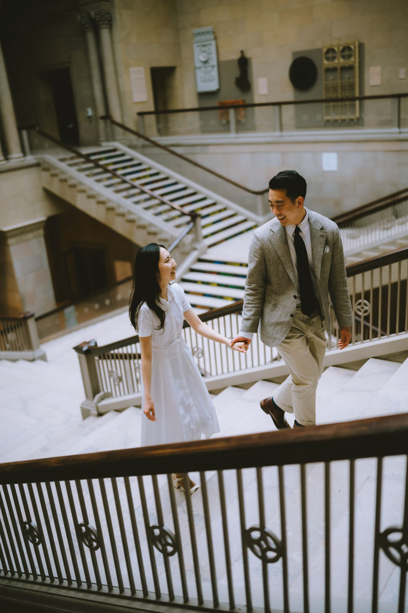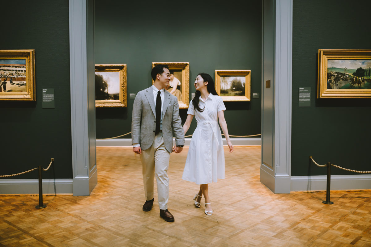 Kaitlyn and Andrew wanted their Art Institute of Chicago engagement shoot to feel like their romantic dates. They have been racking up the frequent flyer miles to see each other every chance they get. Because he lives in Boston and she is currently in Chicago, they love to plan romantic dates together when they are in the same city. Visiting museums is one of the things they enjoy together.
