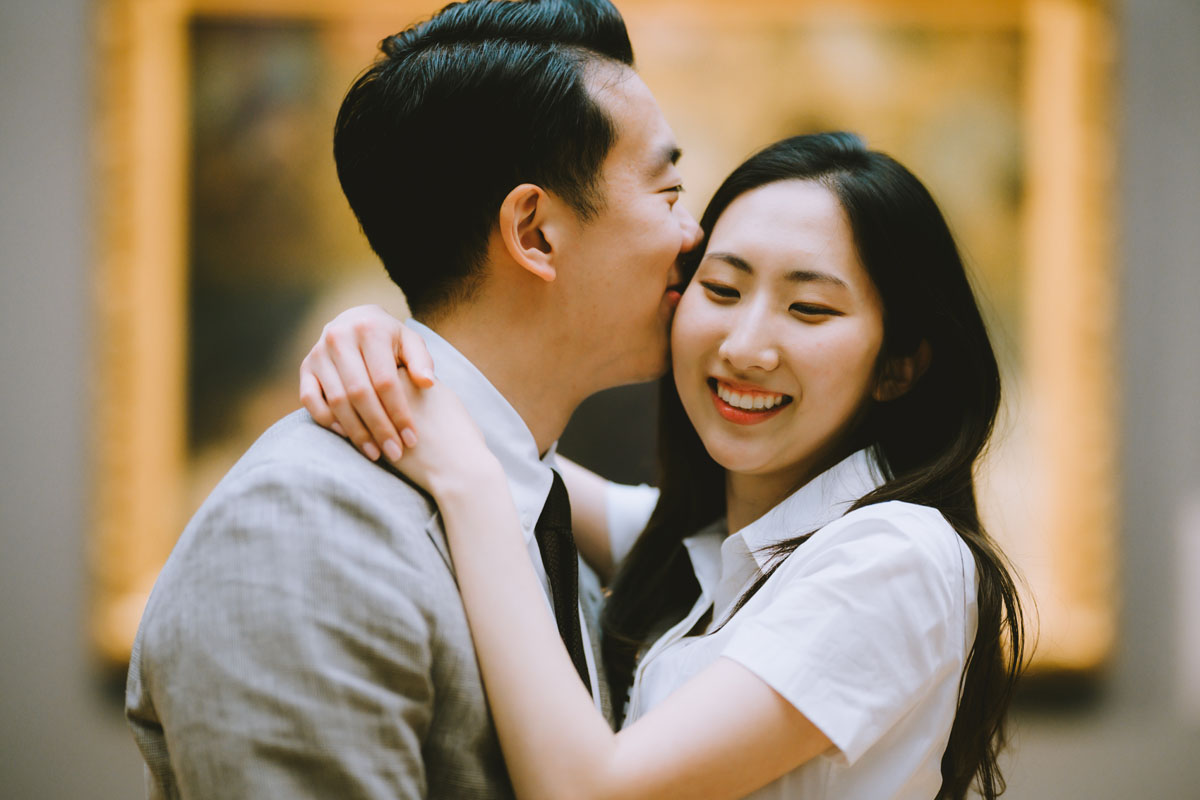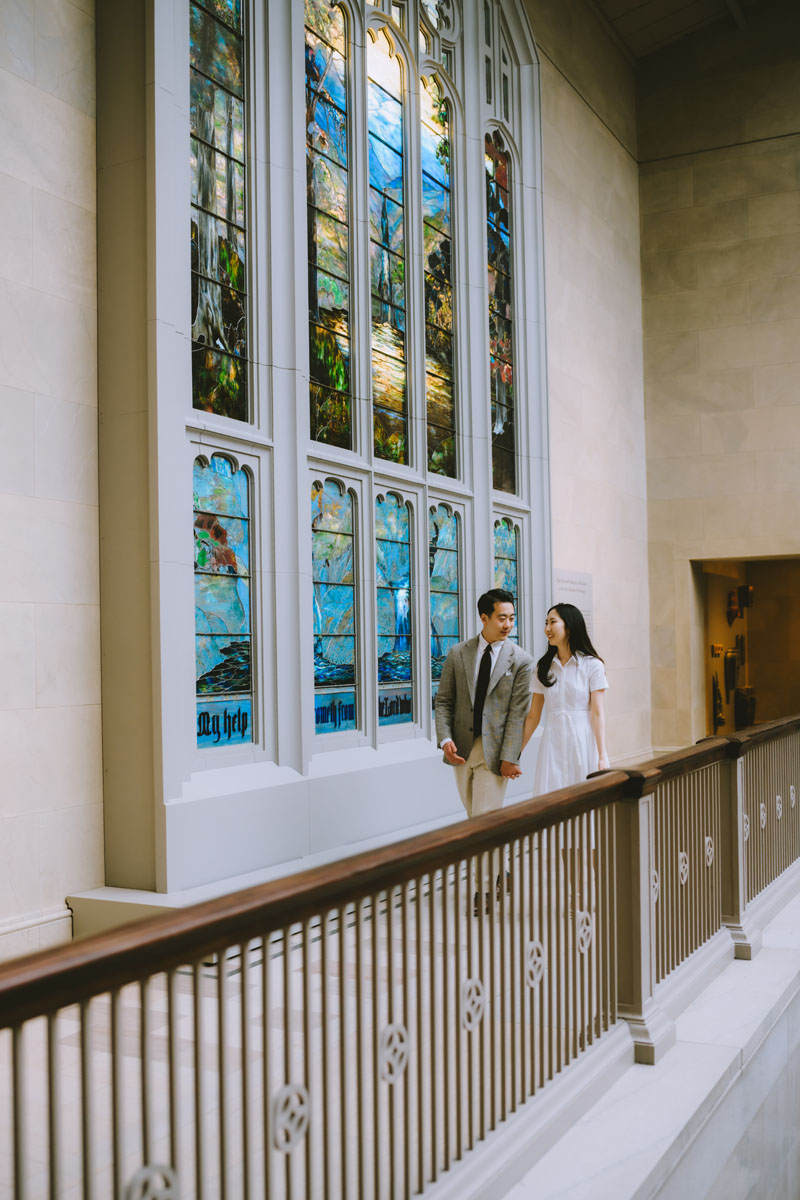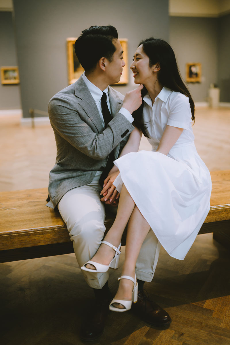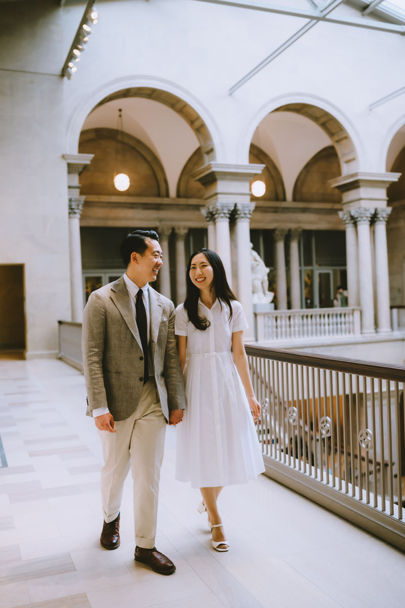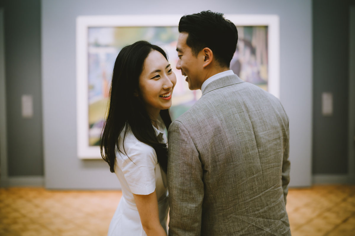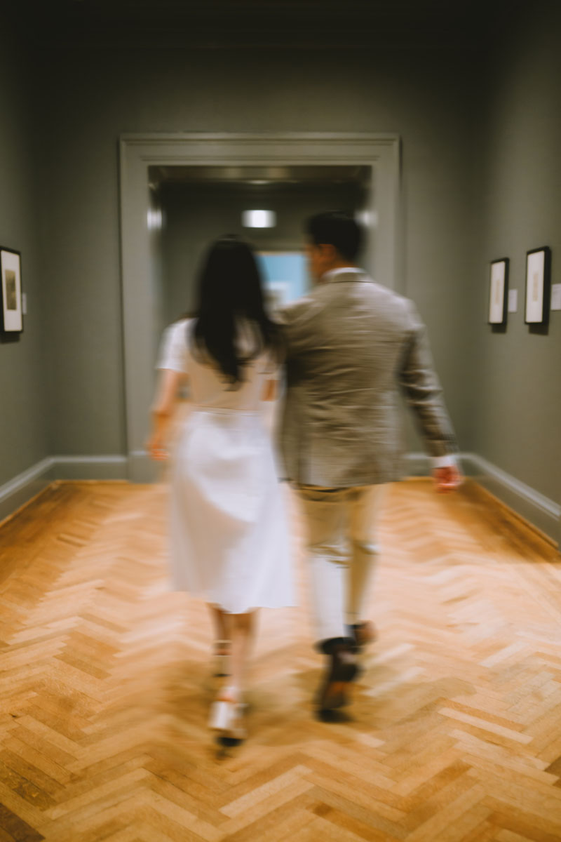 Kaitlyn and Andrew wanted their Art Institute of Chicago engagement shoot to feel like their romantic dates. They have been racking up the frequent flyer miles to see each other every chance they get. Because he lives in Boston and she is currently in Chicago, they love to plan romantic dates together when they are in the same city. Visiting museums is one of the things they enjoy together.