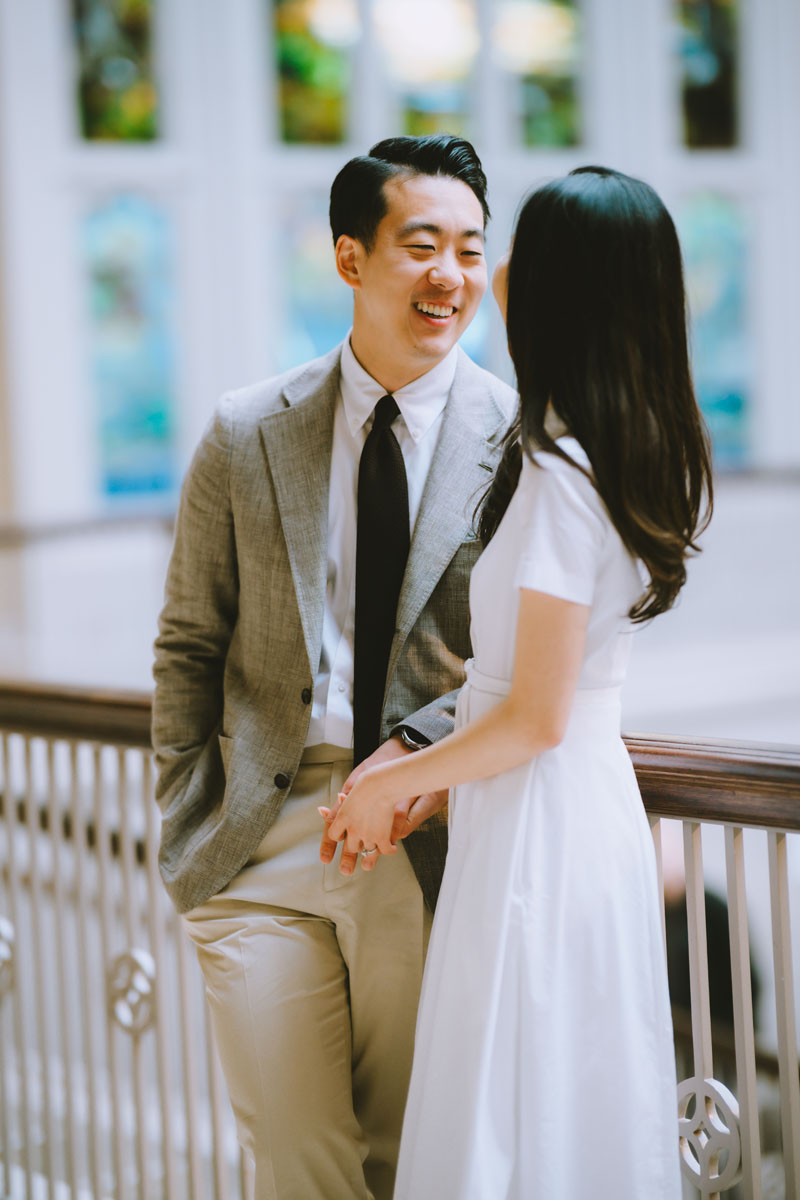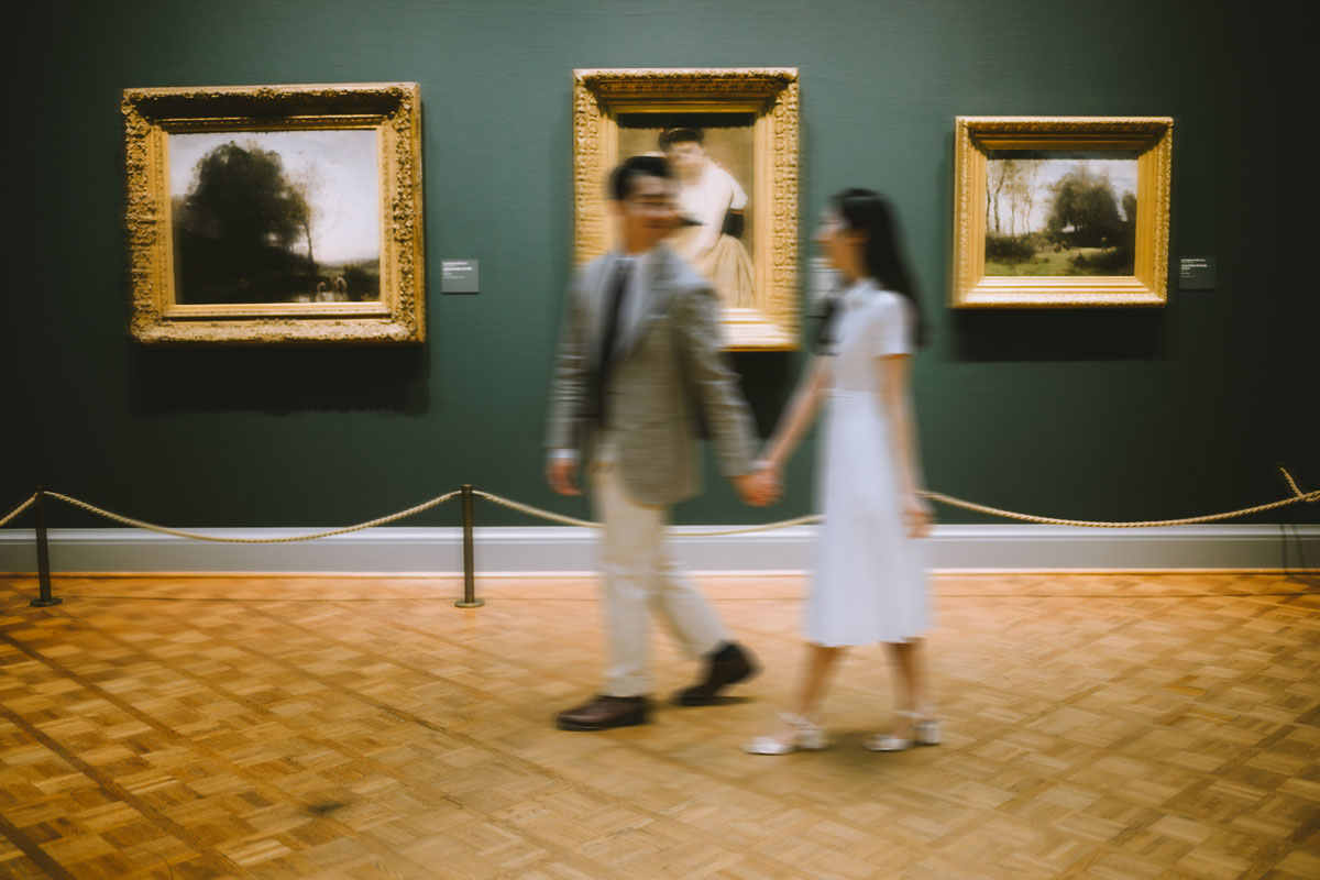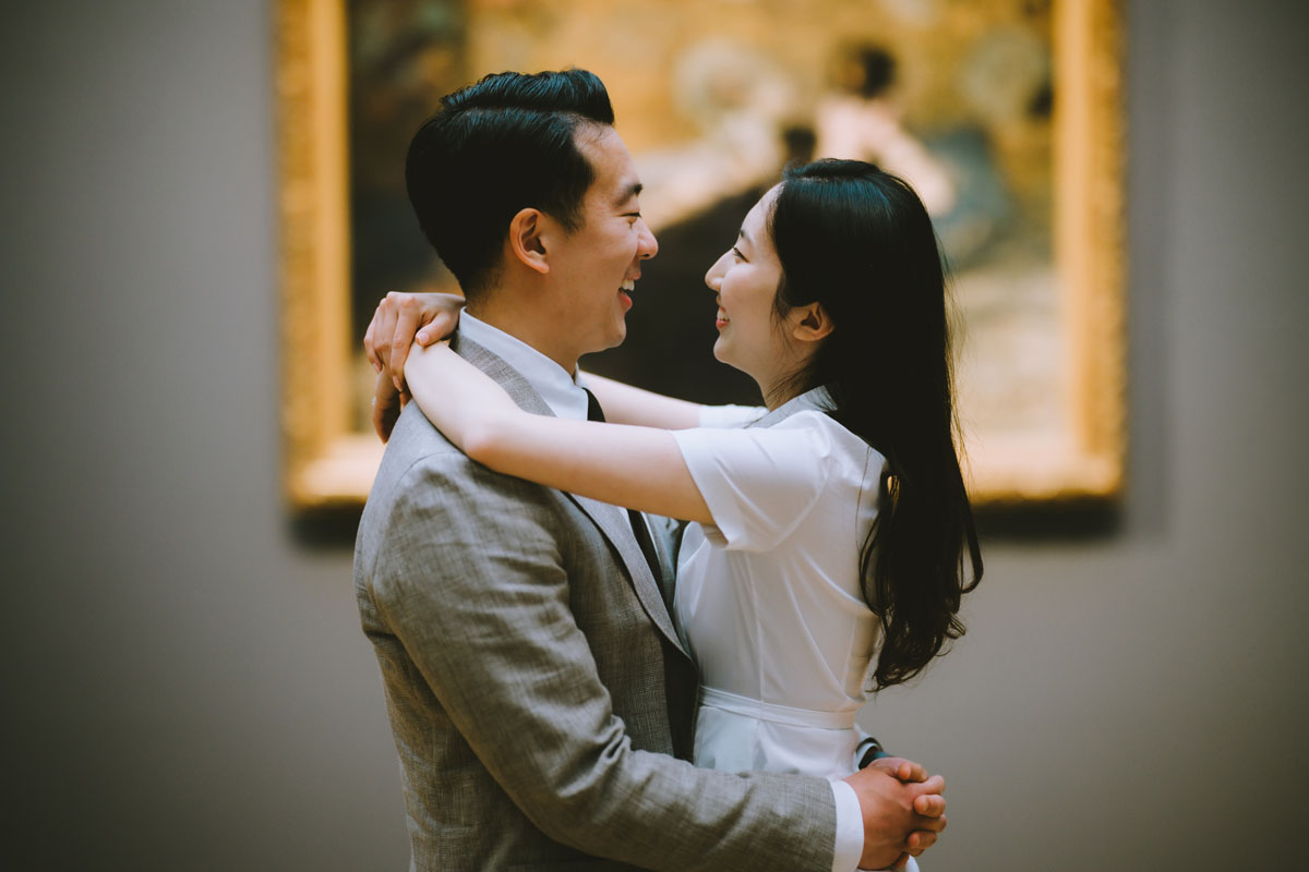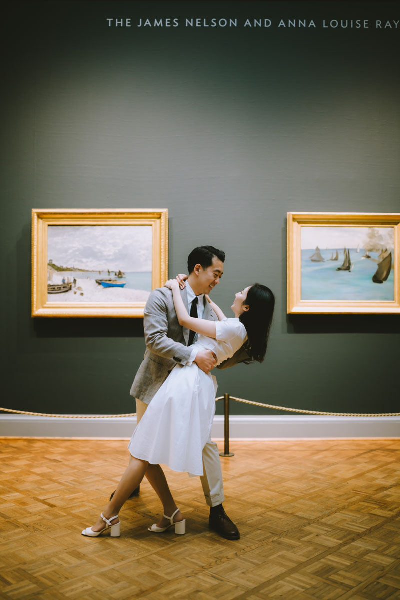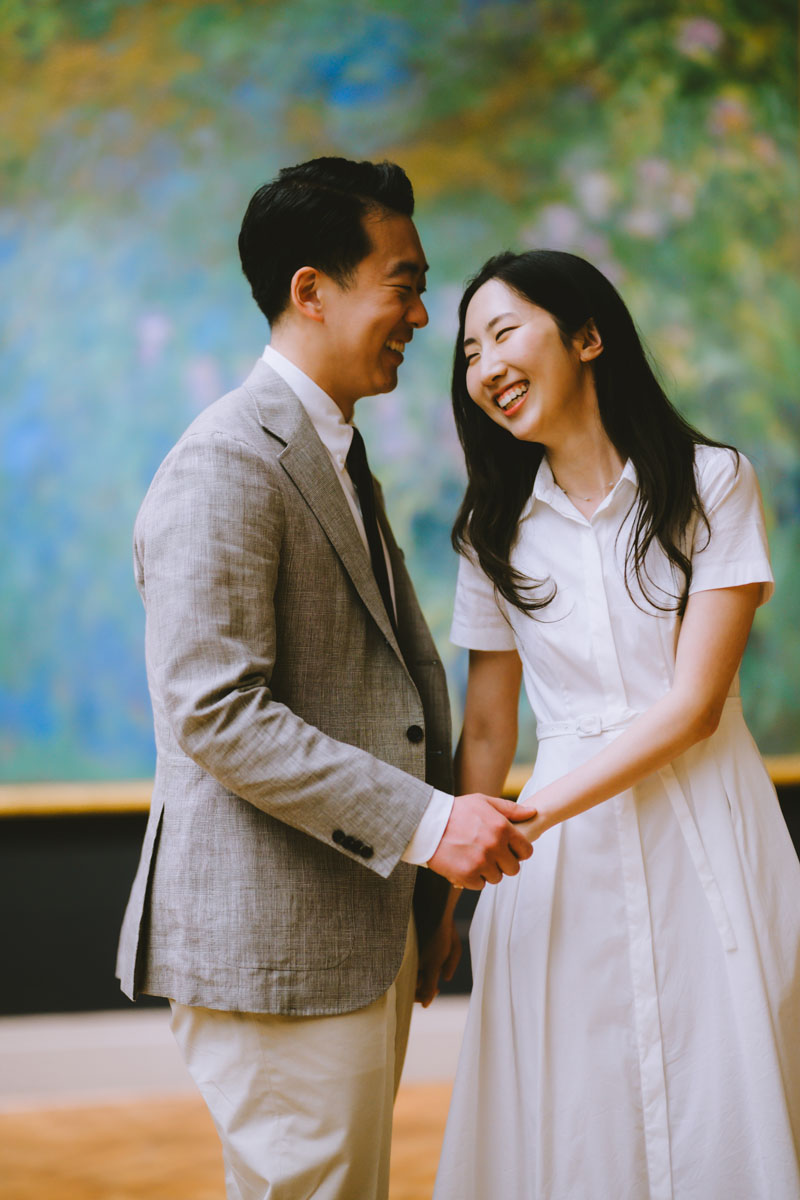 Kaitlyn and Andrew wanted their Art Institute of Chicago engagement shoot to feel like their romantic dates. They have been racking up the frequent flyer miles to see each other every chance they get. Because he lives in Boston and she is currently in Chicago, they love to plan romantic dates together when they are in the same city. Visiting museums is one of the things they enjoy together.