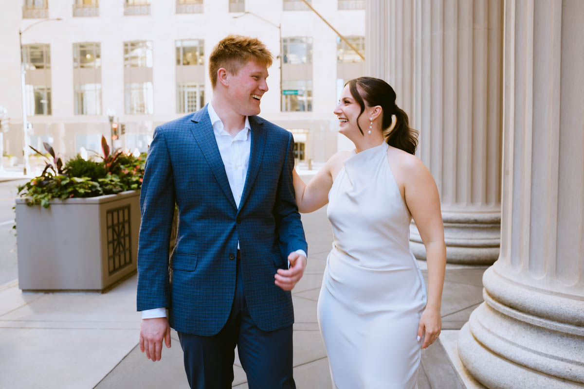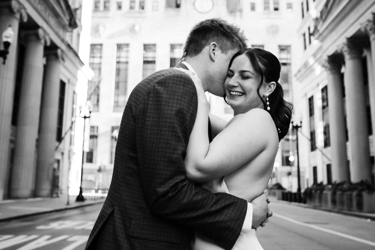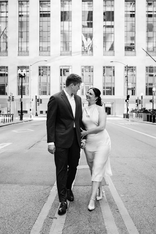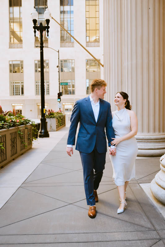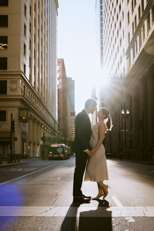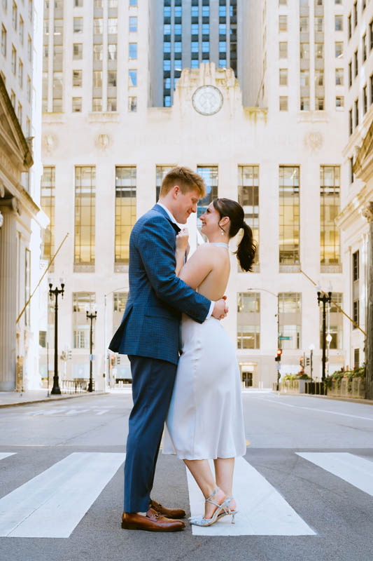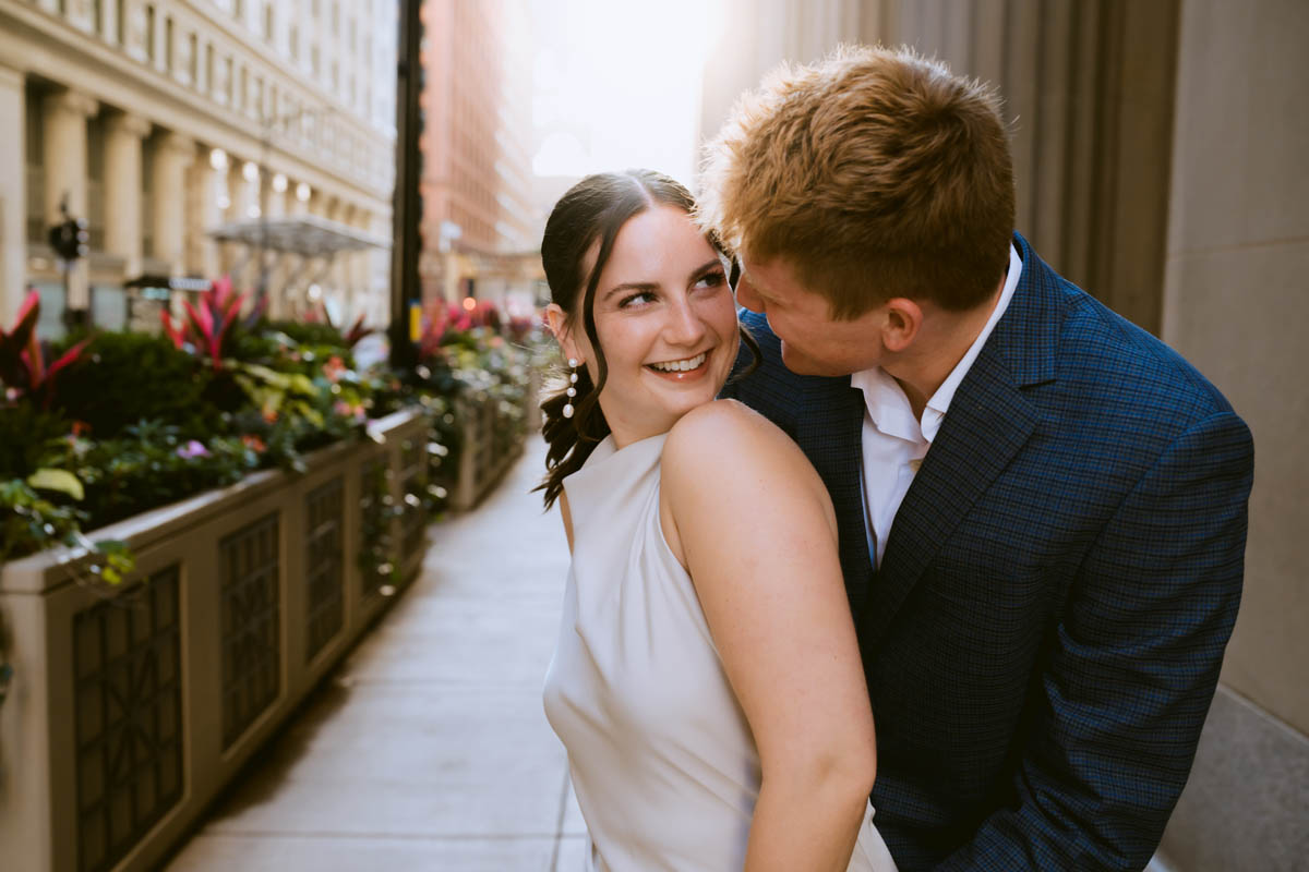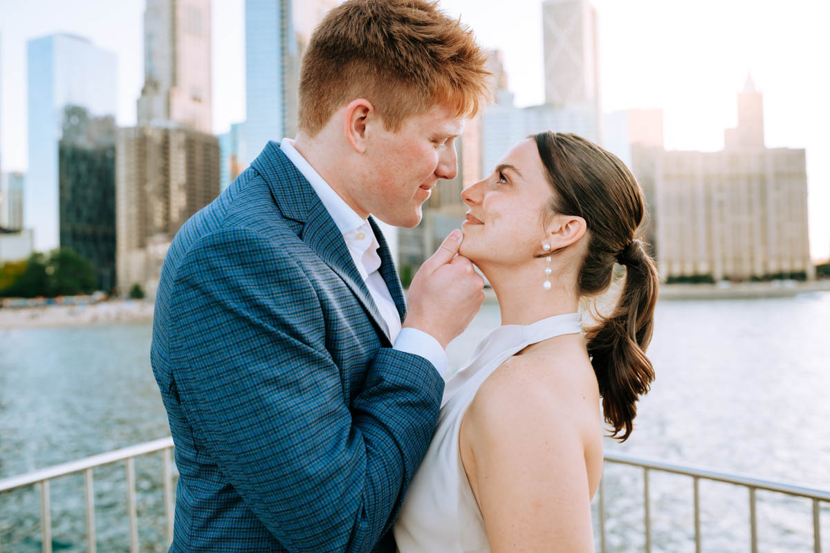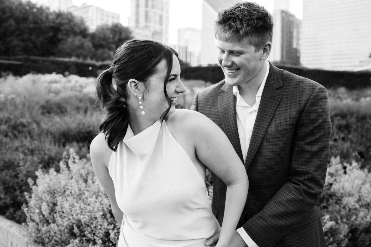 With a rare night off together to enjoy a date night, Grace and Joe had fun laughing and dance together. Stopping at the most iconic spots around the city, they had so much fun together. With the sun gleaming across the L tracks and through the buildings, we started shooting around the Chicago Board of Trade. For a change of scenery, we headed to the beautiful greenery at the Lurie Garden. Then it was off to Olive Park to catch the setting sun while popping the champagne!