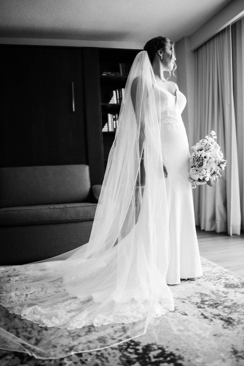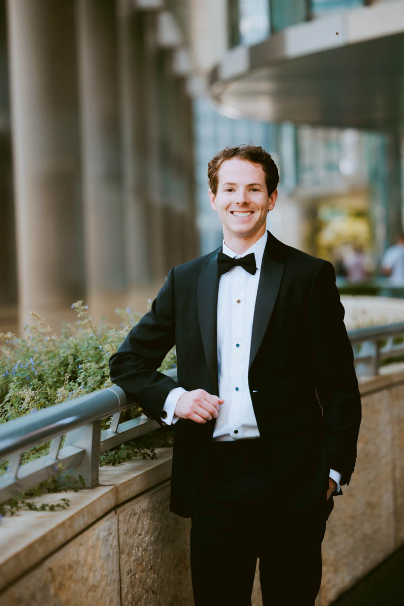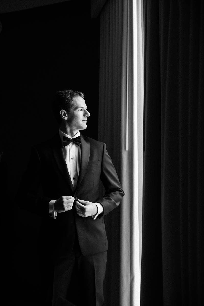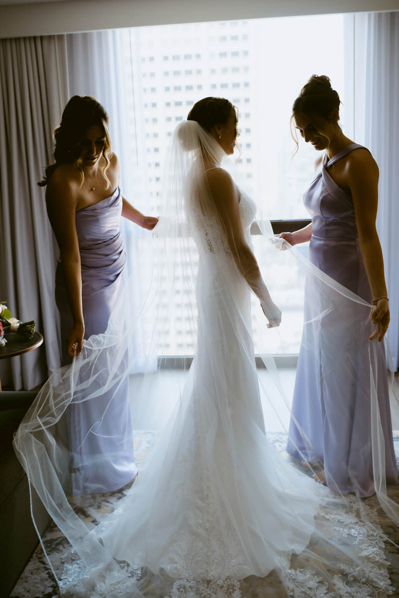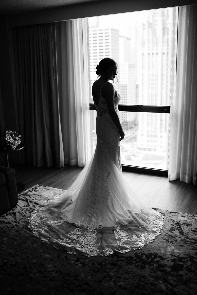 The couple decided to make it a traditional wedding day and not see each other before the ceremony. But the bridesmaids were able to catch a sneak peek as they saw the groomsmen heading to the Wrigley Building for photos.