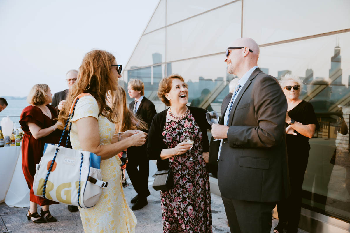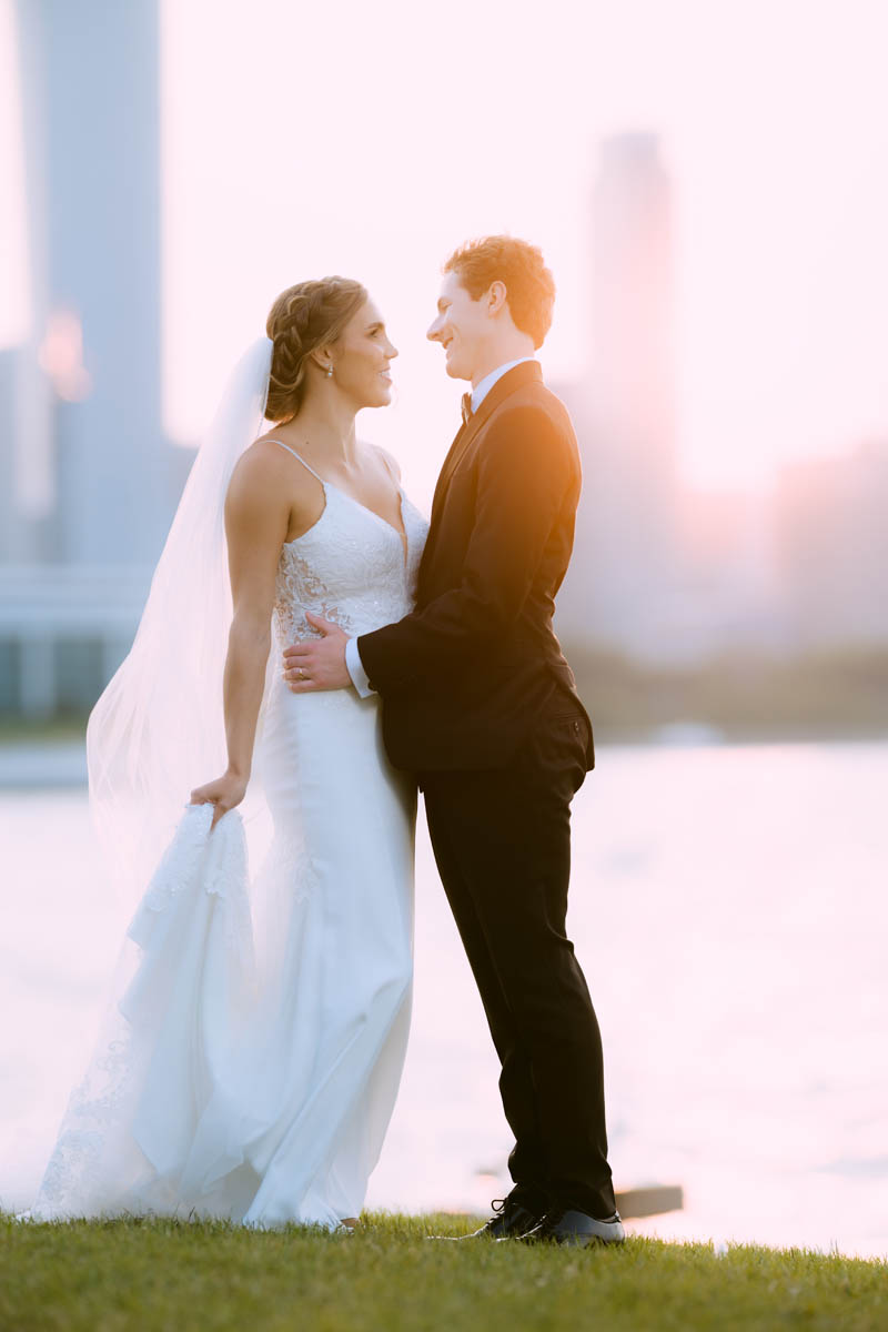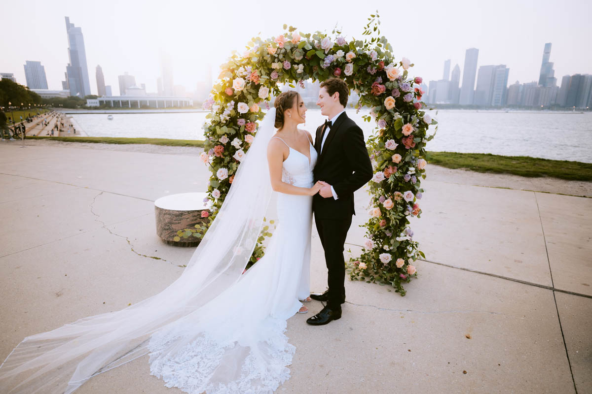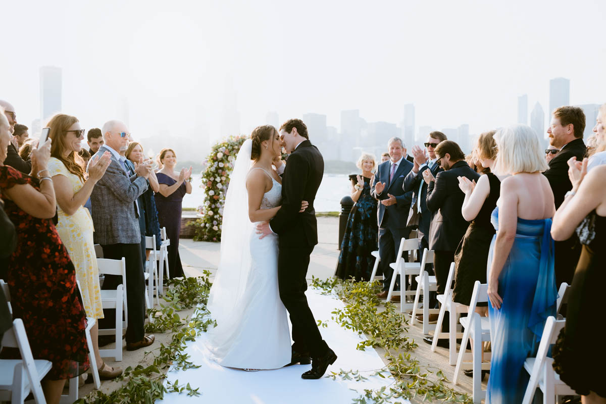 With the bright summer sun shining across Lake Michigan, the guests arrived for the ceremony. Making her big entrance, Natalie walked with her parents down the stairs toward her anxious groom. As the sun began to set behind the city buildings, the couple said their official I do’s. After the ceremony, they wanted a private moment to exchange personal vows they had written to each other.