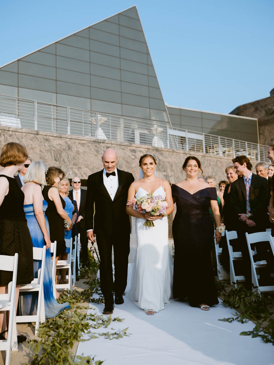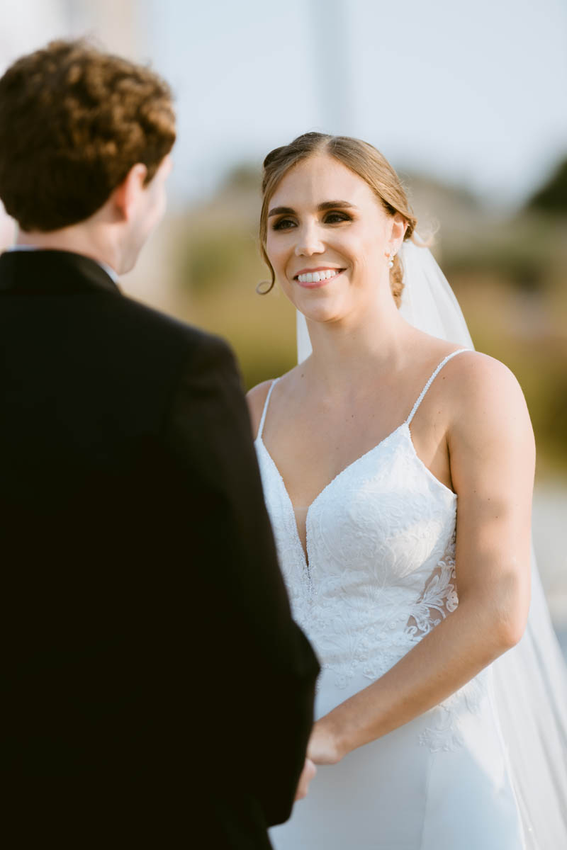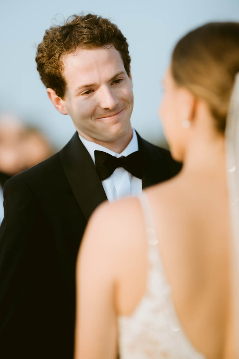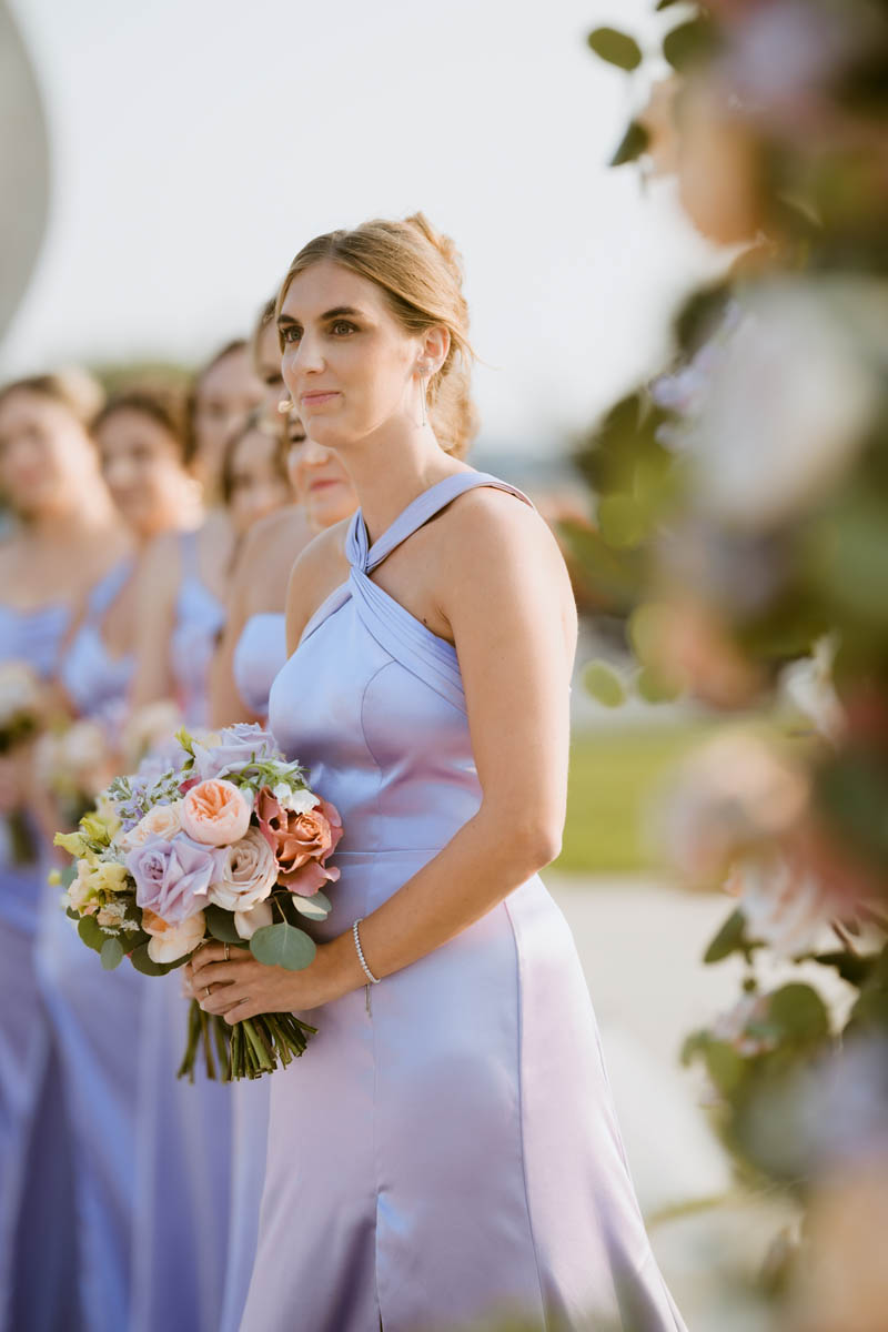 With the bright summer sun shining across Lake Michigan, the guests arrived for the ceremony. Making her big entrance, Natalie walked with her parents down the stairs toward her anxious groom. As the sun began to set behind the city buildings, the couple said their official I do’s. After the ceremony, they wanted a private moment to exchange personal vows they had written to each other.